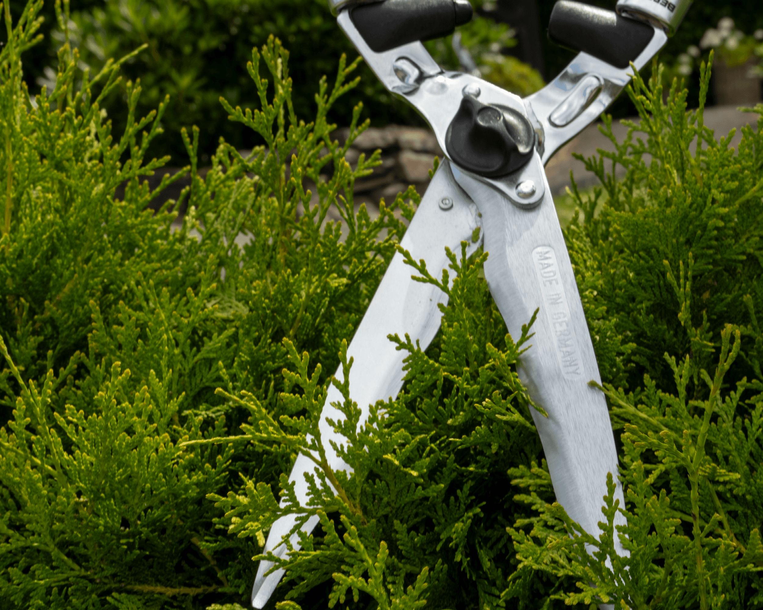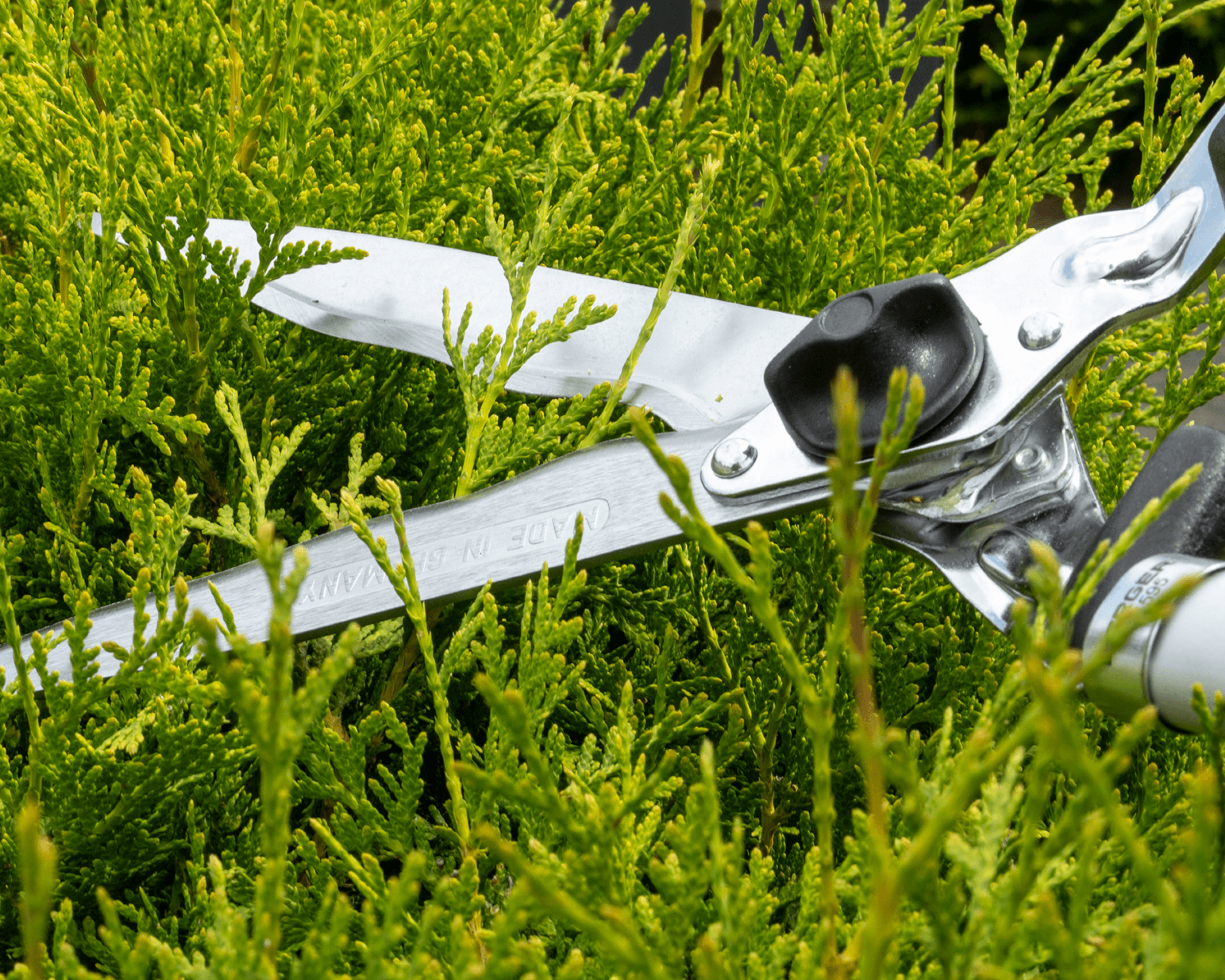 Heckenschere | Korkgriff | Komfort 57 cm | Mit Wellenschliff und Anschlagdämpfer